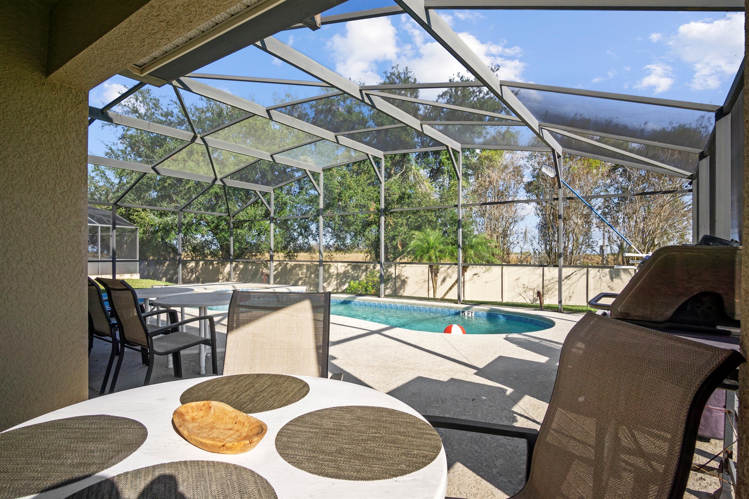 Inside, the home features open and comfortable living areas, a fully equipped kitchen, and well-furnished bedrooms designed for a relaxing stay. Outdoors, guests can enjoy the private pool, with pool heating available for $40 per day during all months. Pool and hot tub heating must be requested at least 24 hours before arrival. A BBQ grill is available for $50 per stay, ideal for outdoor cooking and family meals.