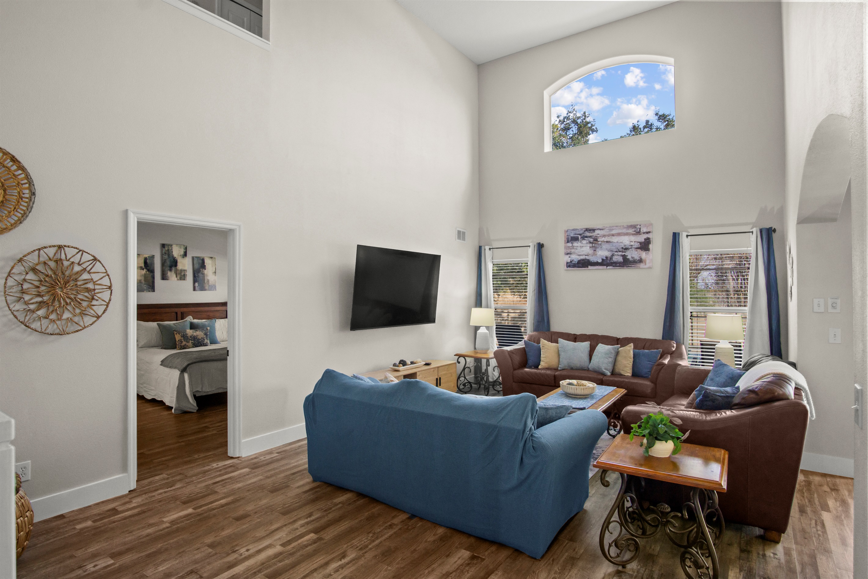Guests have full access to Solana Resort amenities, including a clubhouse with tiki bar, large heated community pool, spa, fitness center, game room, mini-golf, sports courts (volleyball and soccer), and free Wi-Fi at the clubhouse. The resort is gated, providing a safe and welcoming vacation environment.