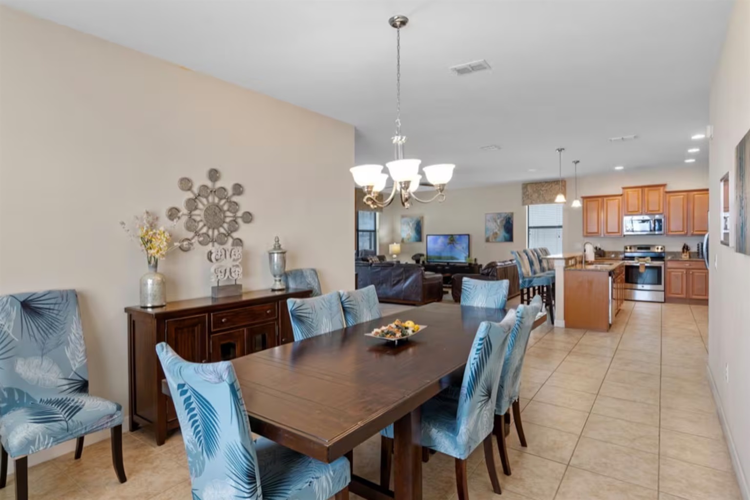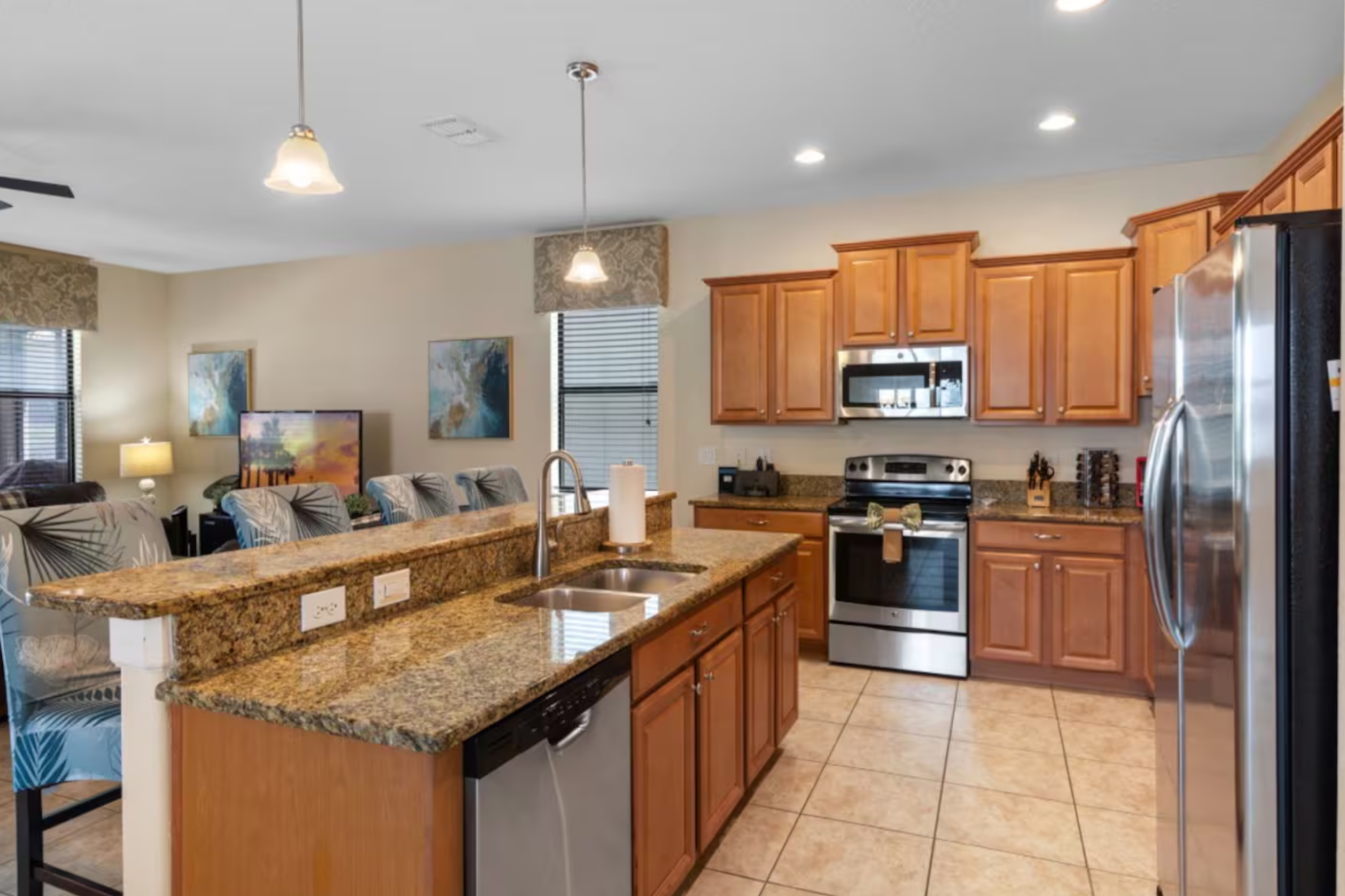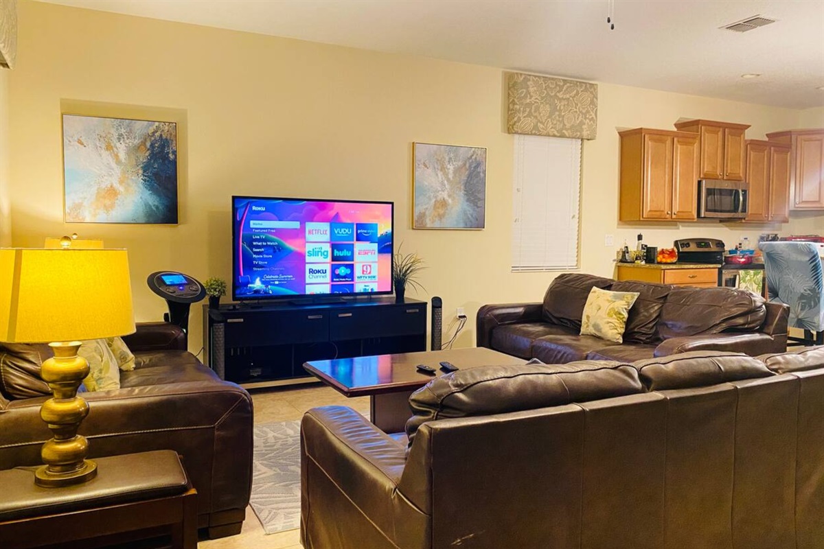Inside, you’ll find bright living spaces, comfortable bedrooms, a fully equipped kitchen, and high-speed Wi-Fi to keep everyone connected for work, streaming, or planning park days. Families traveling with little ones will appreciate the included Pack ’n Play for added convenience.