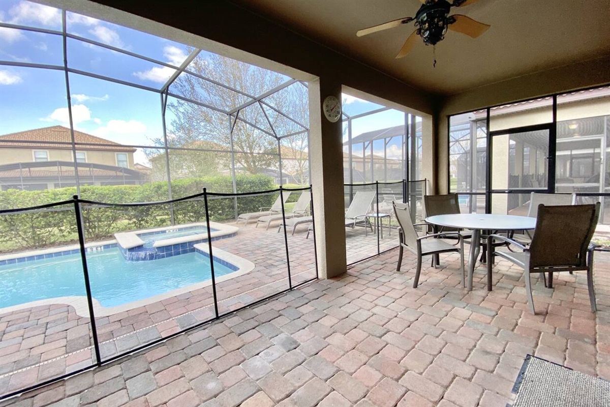 Step outside and enjoy your private outdoor space, ideal for relaxing after a day at the parks. A BBQ grill is available for $60 per week, perfect for outdoor meals and family gatherings.