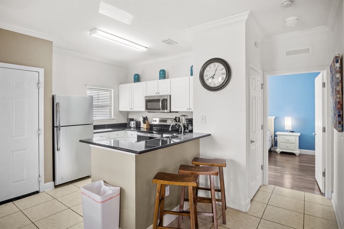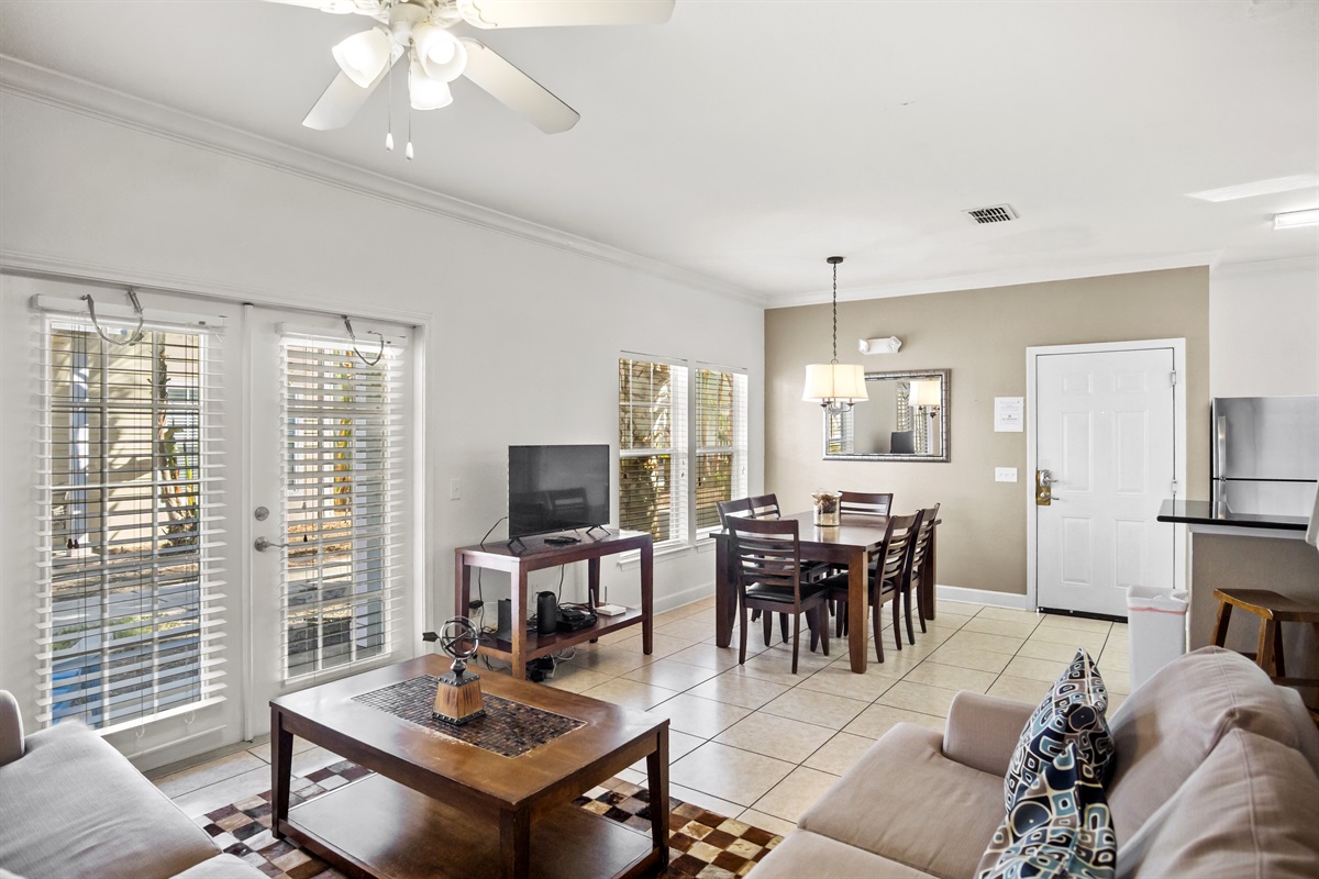 The condo features a comfortable and functional layout with inviting living areas, a fully equipped kitchen, and well-appointed bedrooms, offering plenty of room for everyone to unwind after a day at the parks. The ground-floor location provides easy access and added convenience.