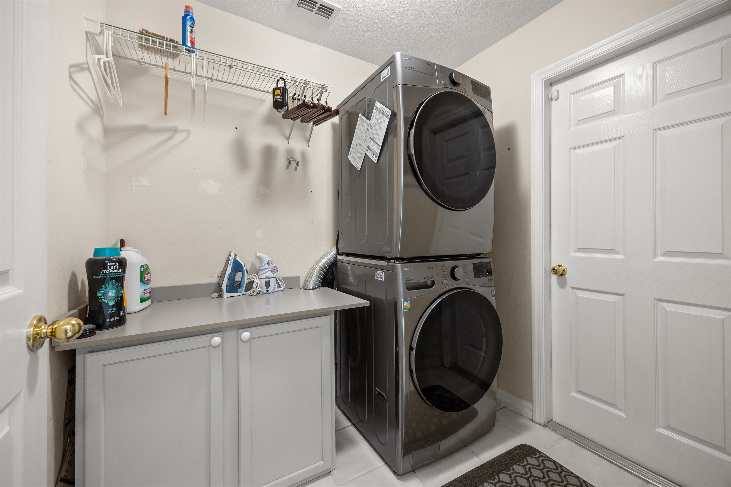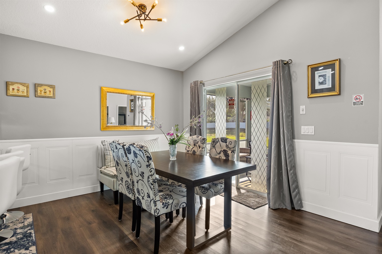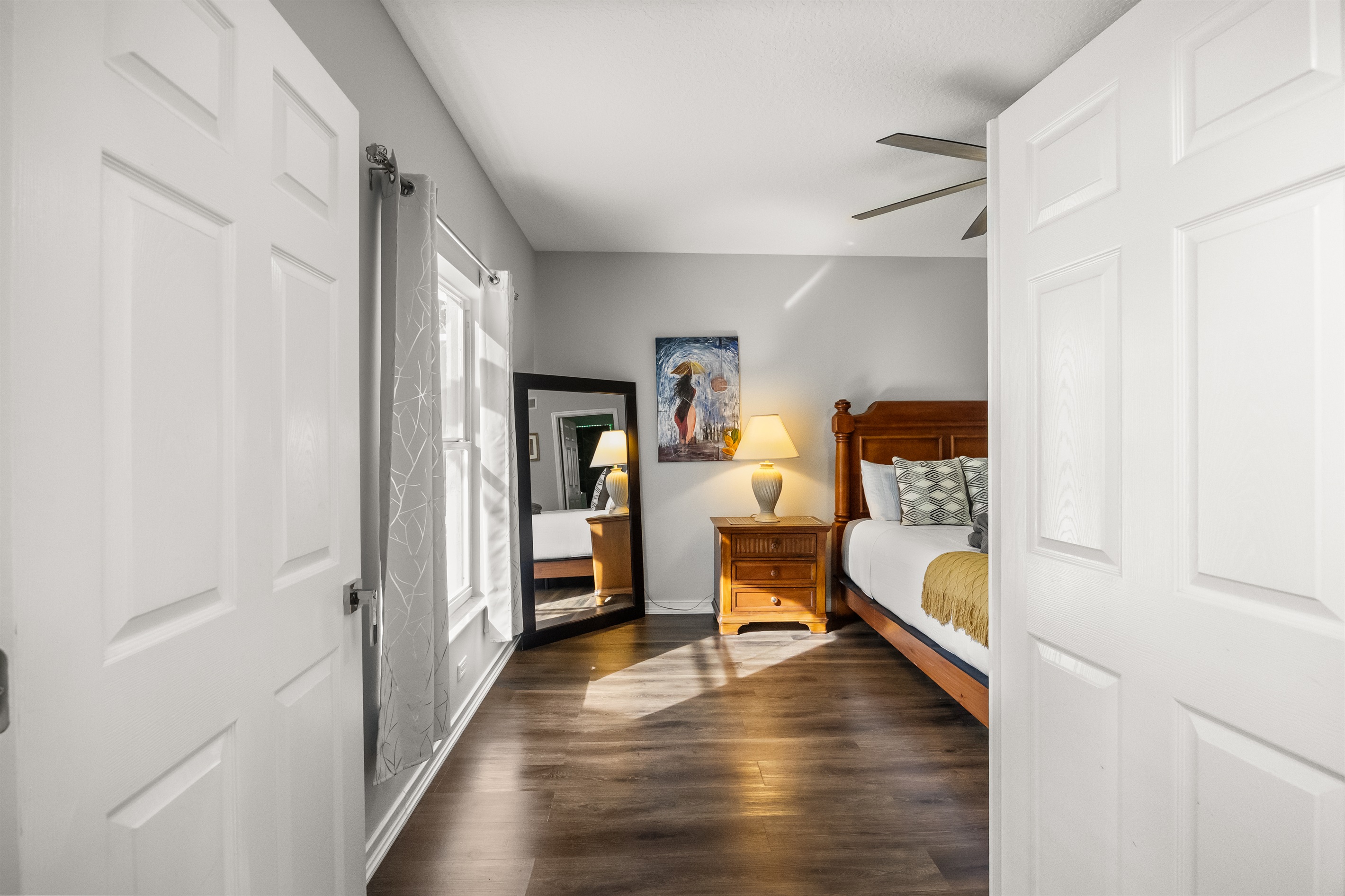 For your safety and peace of mind, the home is equipped with smoke detectors and an exterior Ring camera for security purposes.