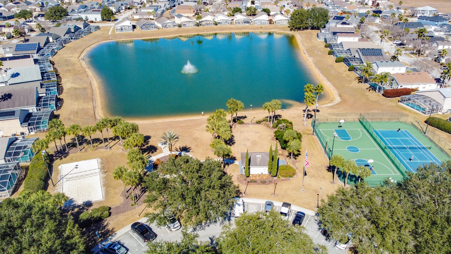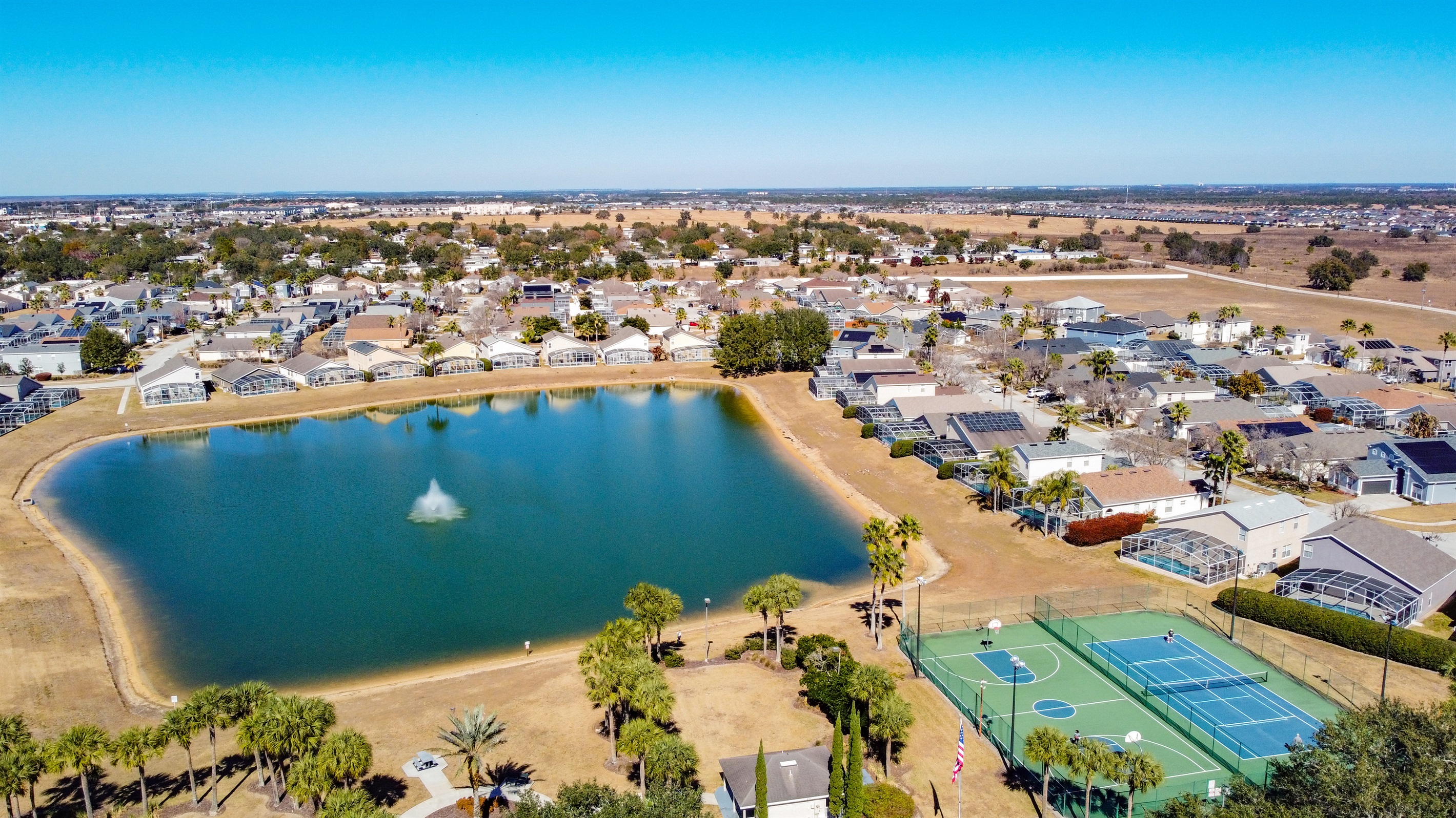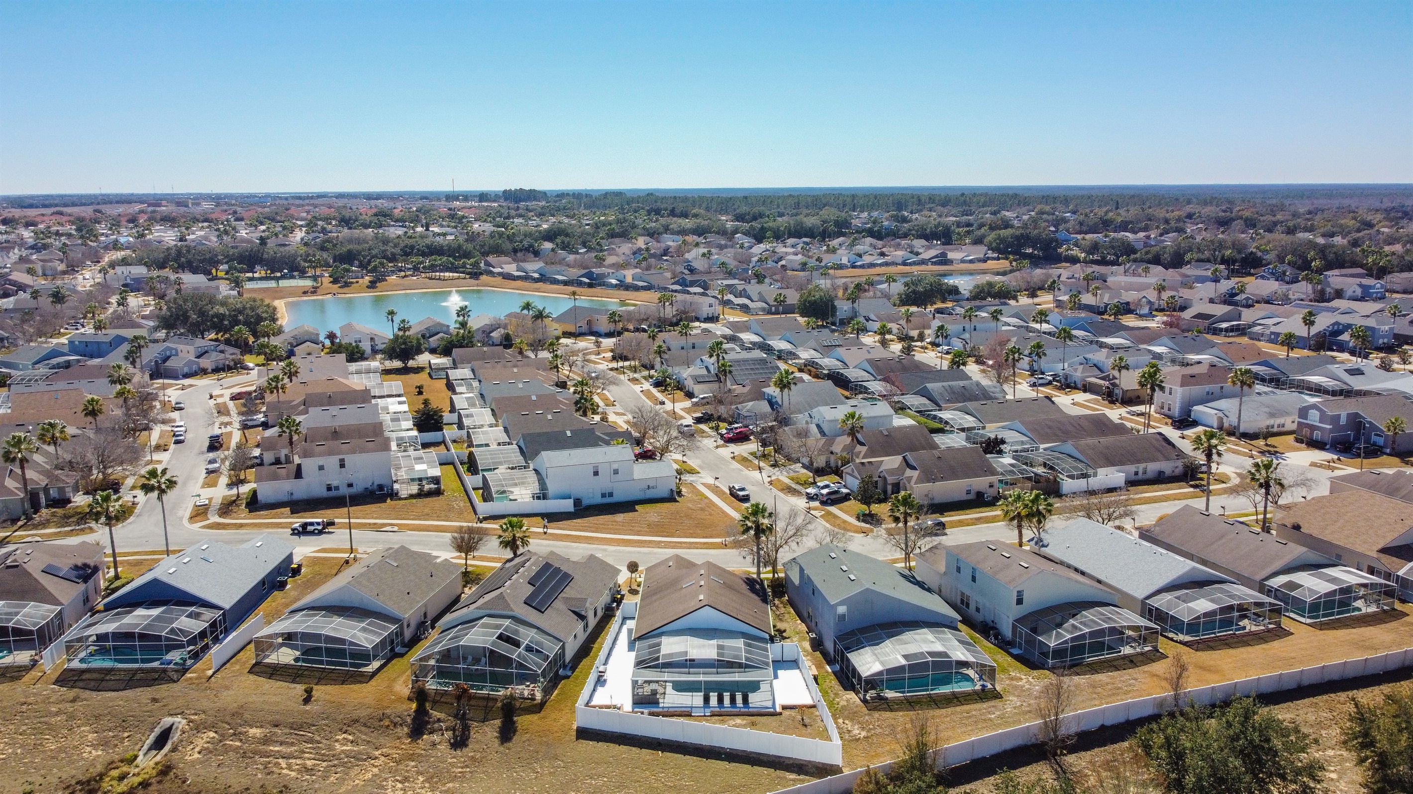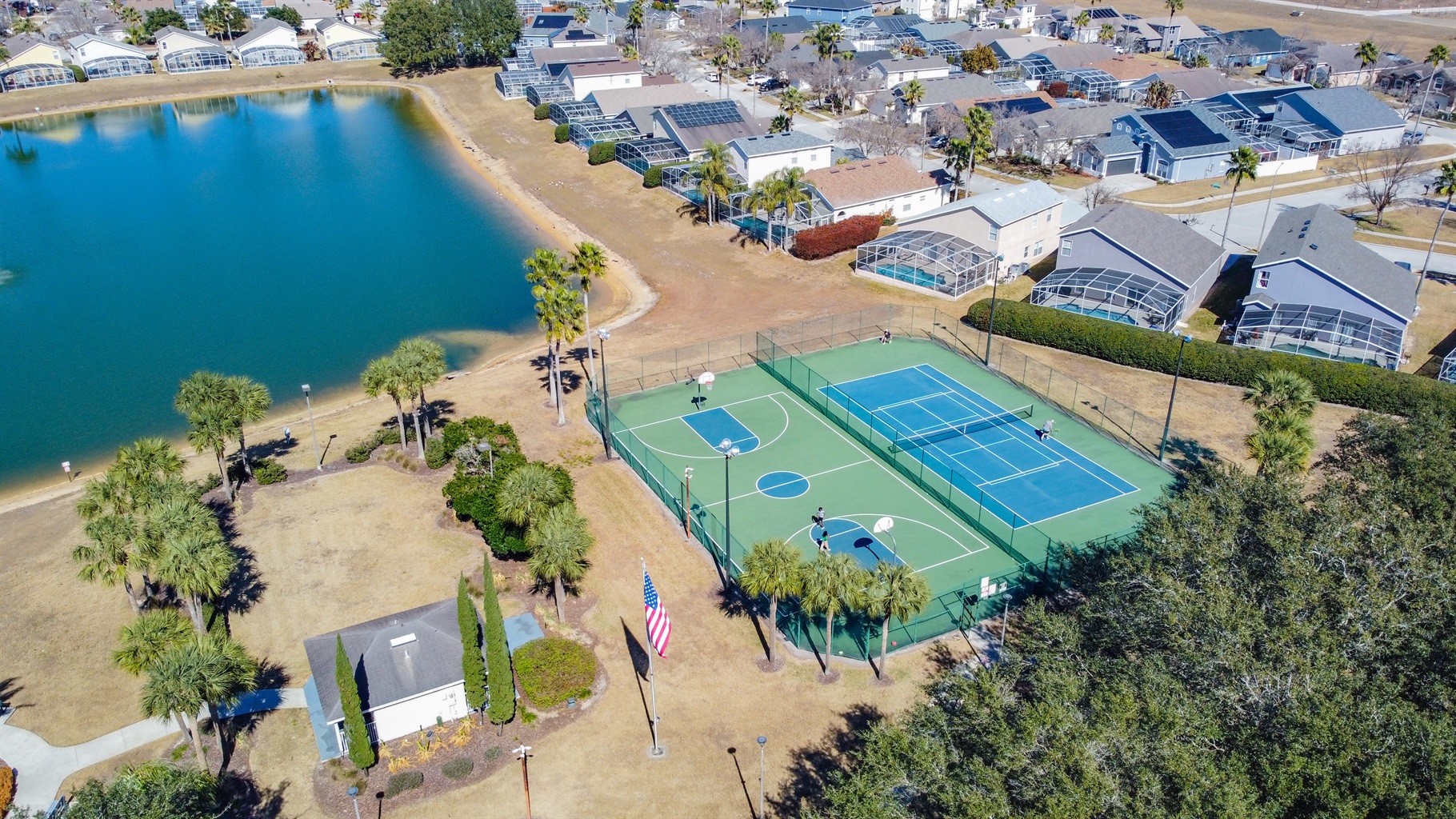 Guests can enjoy the Hampton Lakes community amenities, including a community swimming pool, tennis courts, volleyball courts, a children’s playground, and a scenic fishing pond surrounded by green open spaces. The neighborhood is well-maintained and family-friendly, offering a calm atmosphere just a short drive from shopping, dining, golf, and major theme parks.