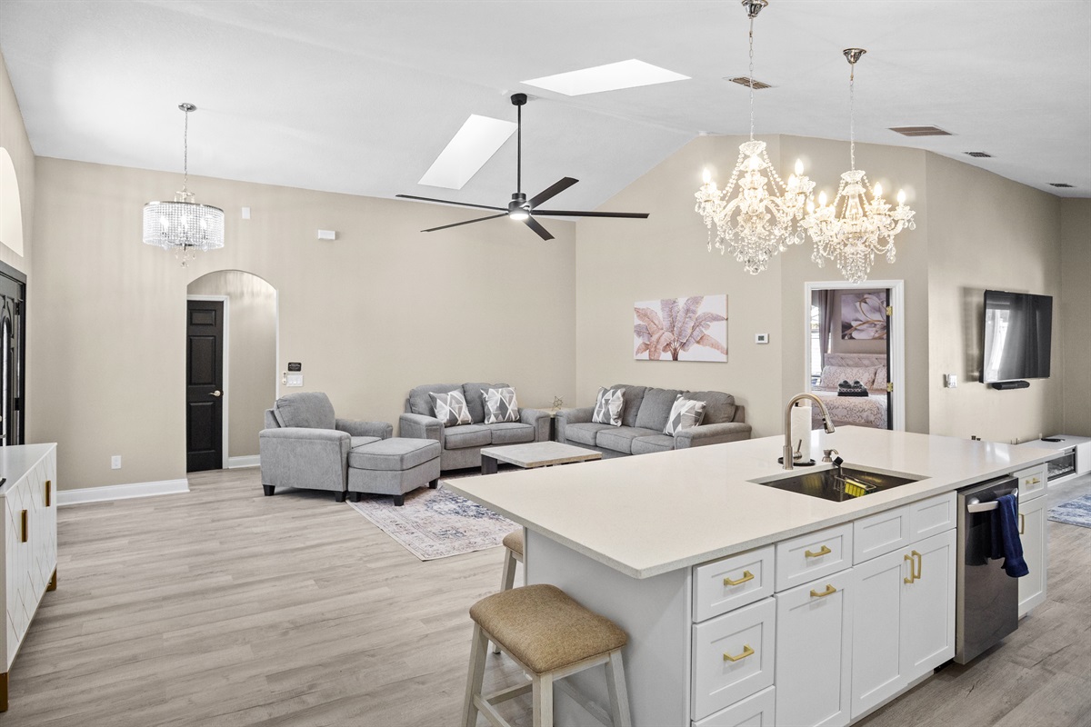Inside, the home offers inviting living areas, a fully equipped kitchen, and comfortable bedrooms designed to help you unwind after a day at the parks. Whether you’re visiting for adventure or relaxation, you’ll have everything you need for a pleasant and stress-free stay.