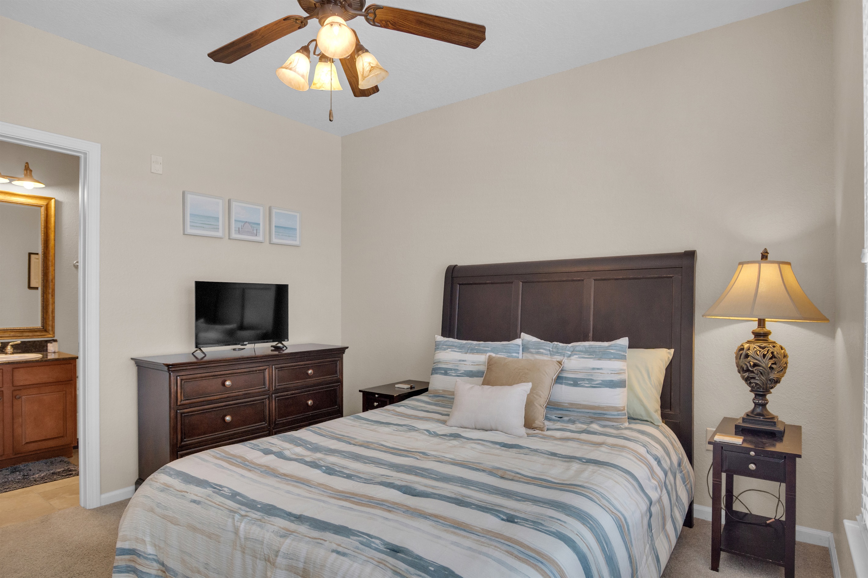 Bedroom 1 – King bed with private bathroom