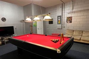 The home is family-friendly and exceptionally comfortable, with a luxurious King size bed in the Primary Suite, a Queen size bed in the lower bedroom, and two kids rooms, each with two Twin size beds. All bedrooms, except for one of the kids' rooms, have smart TVs. There is plenty of room to lounge, with two indoor living rooms (one with a 43" Smart TV), a game room (complete with a pool table and darts), and of course, the backyard pool and patio. We also have a Ring security system monitoring the front door for additional safety.