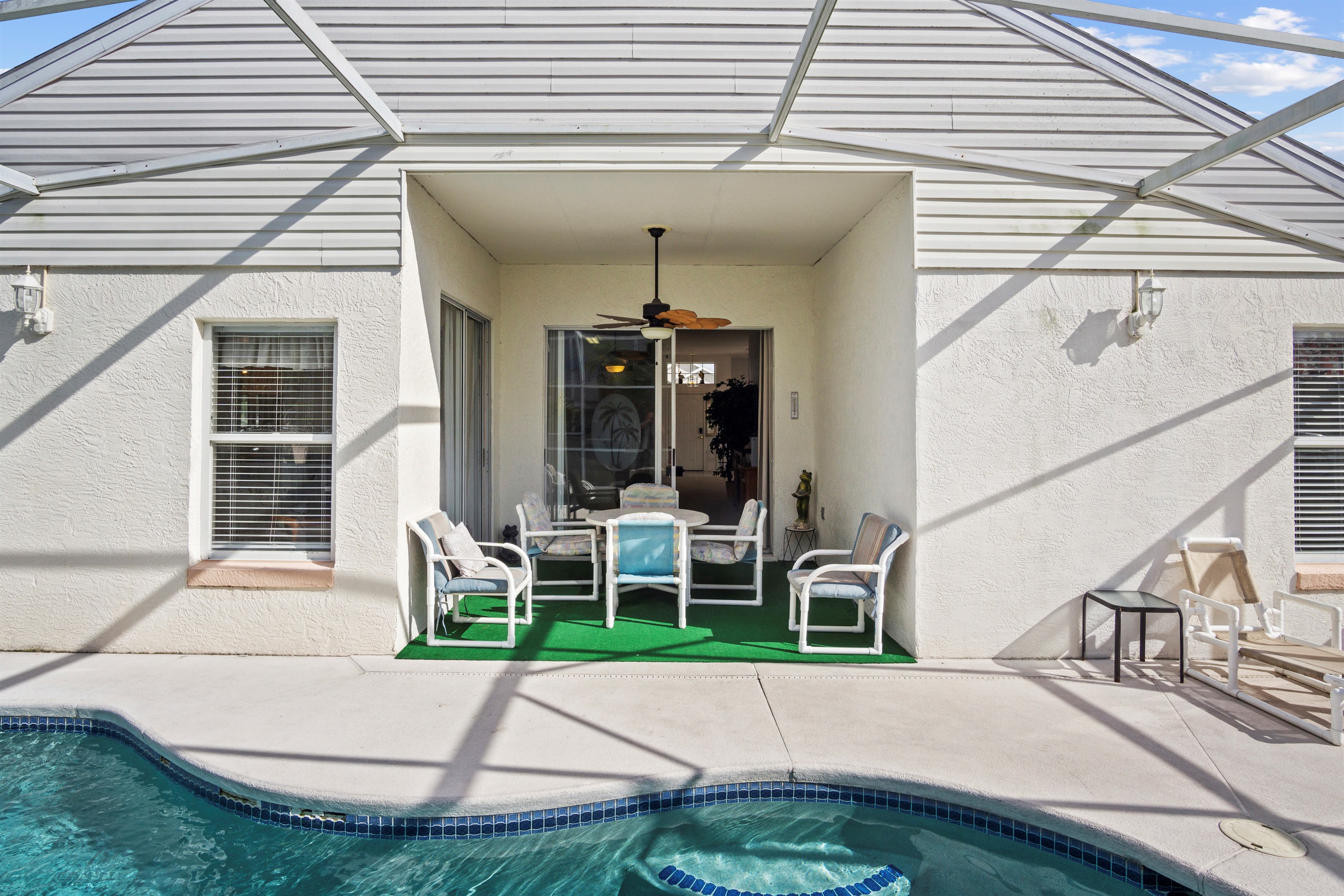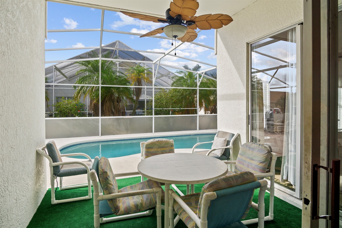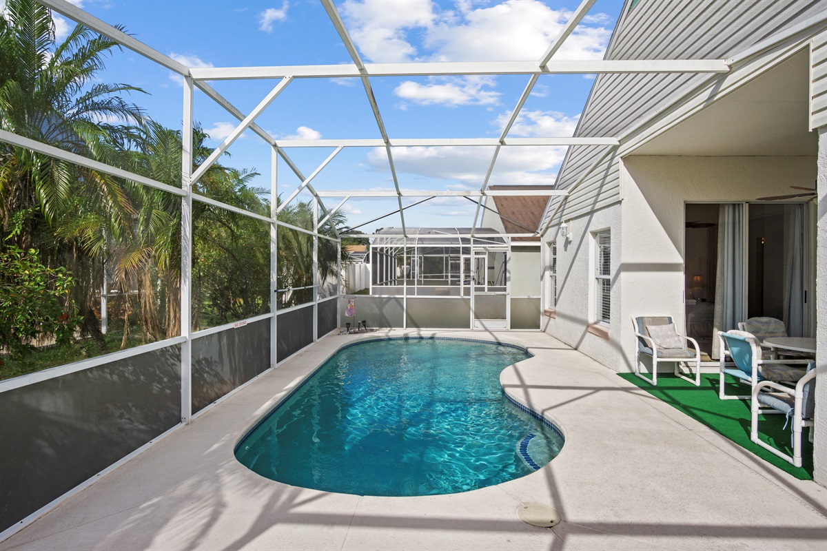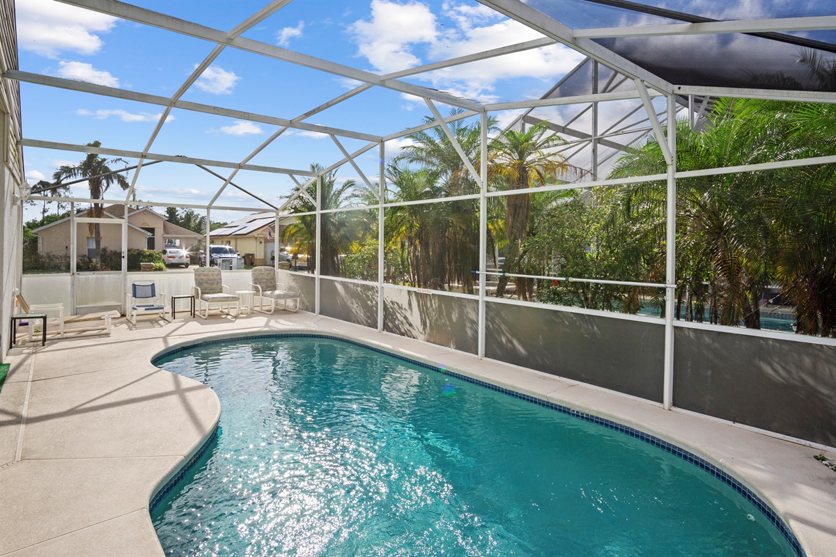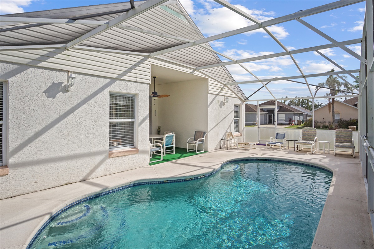 • Private Screened Pool: Enjoy your own pool, sun loungers, and outdoor dining area in a quiet, safe neighborhood.
